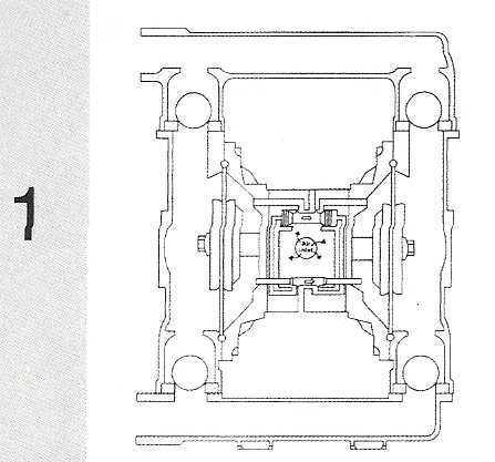 在泵的兩個對稱工作腔中,各裝有一塊有彈性的隔膜6,聯(lián)桿將兩塊隔膜結(jié)成一體,壓縮空氣從泵的進氣接頭1進入配氣閥3后,推動兩個工作腔內(nèi)的隔膜,驅(qū)使聯(lián)桿聯(lián)接的兩塊隔膜同步運動。與此同時,另一工作腔中的氣體則從隔膜的背后排出泵外。一旦到達行程終點。配氣機構(gòu)則自動地將壓縮空氣引入另一個工作腔,推動隔膜朝相反方向運動,這樣就形成了兩個隔膜的同步往復(fù)運動。每個工作腔中設(shè)置有兩個單向球閥4,隔膜的往復(fù)運動,造成工作腔內(nèi)容積的改變,迫使兩個單向球閥交替地開啟和關(guān)閉,從而將液體連續(xù)地吸入和排出。